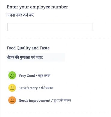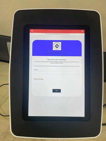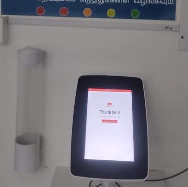 A simple android tab at your restaurant, employee food court or retail outlet. Customers can answer a quick survey and share their experience.